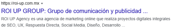 Como en el ejemplo anterior para la versión idiomática, si un usuario situado en México buscase “roi up”, se encontraría con el siguiente SERP: