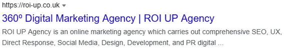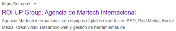 Veamos esto en un ejemplo: si un usuario de España escribe en su búsqueda “roi up”, el snippet que aparecerá es el siguiente: